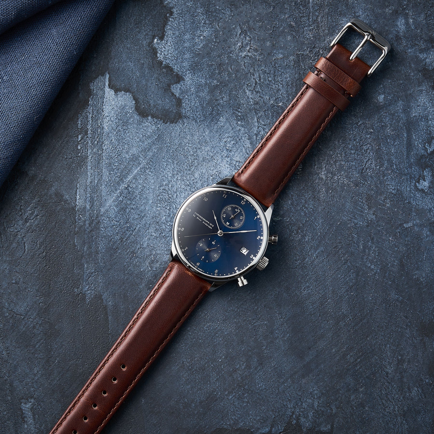 The watch is carefully designed with quality materials, sapphire glass and beautiful royal blue details. A chronograph watch with a clean and classic design in the perfect size for all gentlemen.