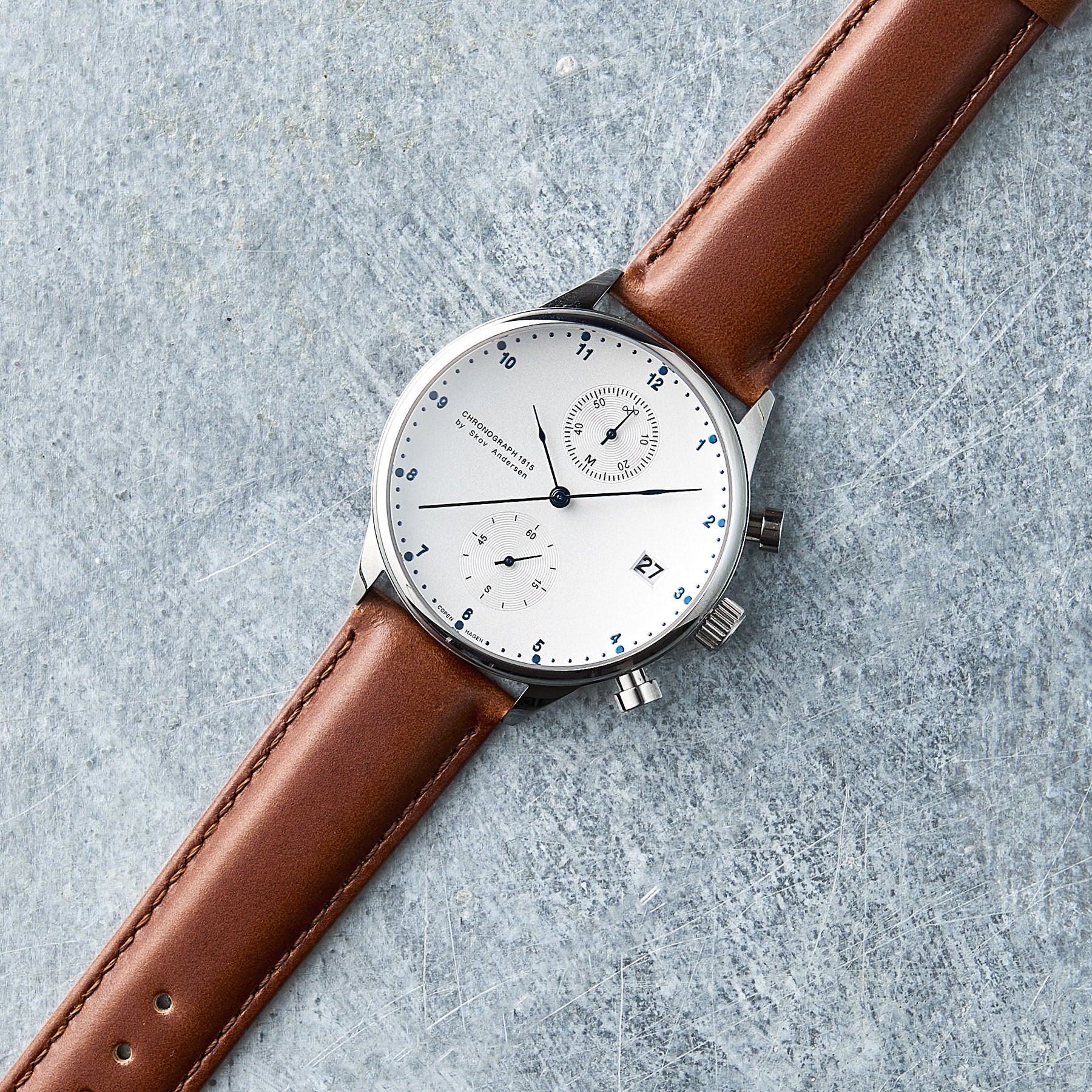 1815 was an important year. It was the year the chronograph technique was invented. With its classic design details, the first designed timepiece in the Skov Andersen collection could therefore be named nothing else than 1815. Each timepiece is made unique with its individual number engraved on the case back.
