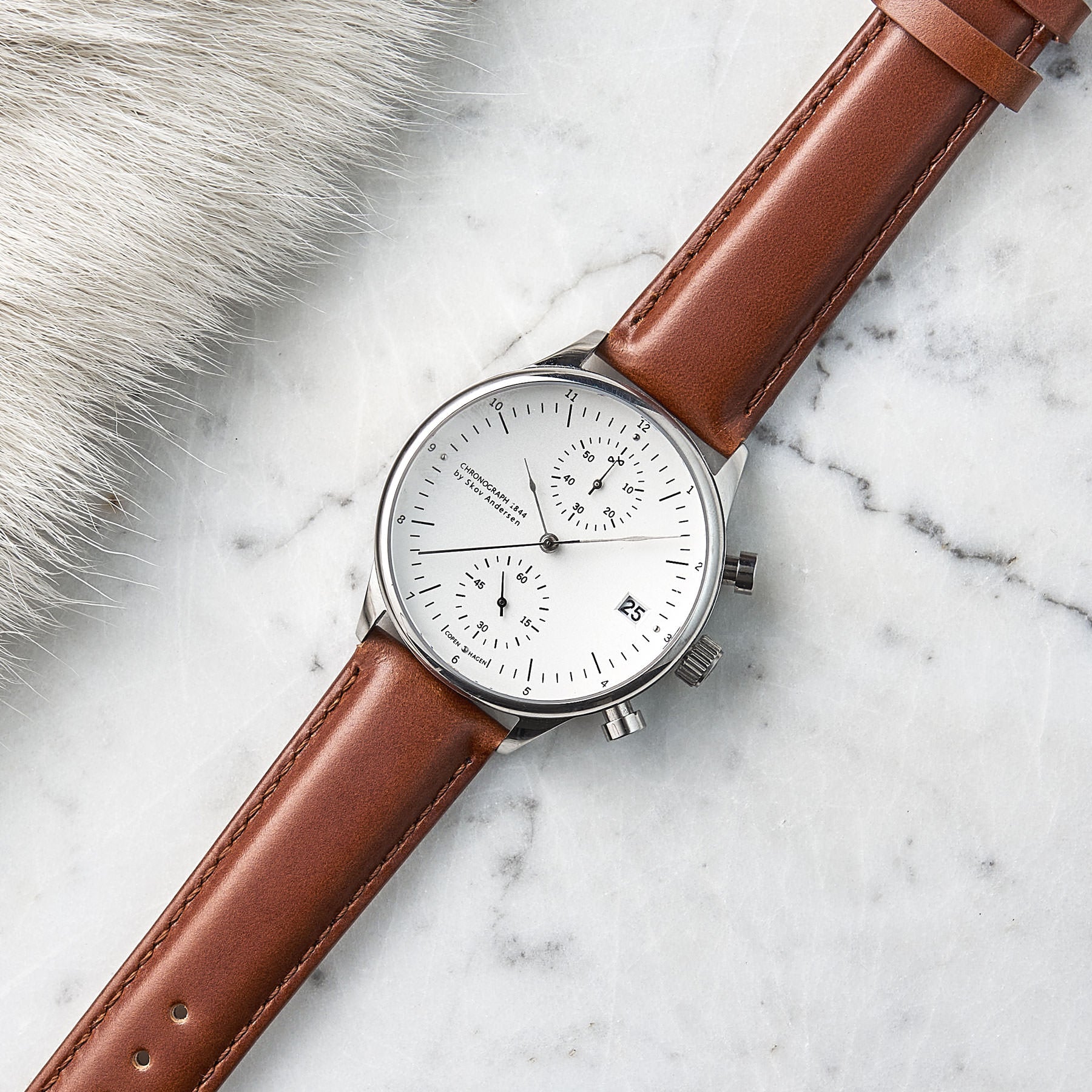 The watch is carefully designed with quality materials and sapphire glass in a perfect 41mm case. A chronograph watch with a graphical and balanced design.