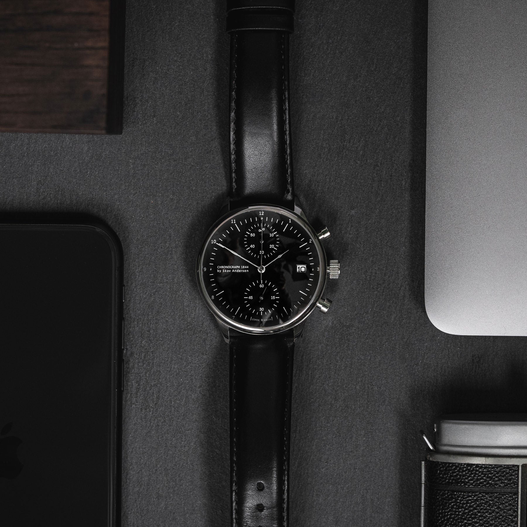 In 1844 the chronograph was updated to include the resetting feature, which allowed successive measurements. We designed the dial of our model 1844 with numbers and precision lines to make each timing (and reset) to be spot on accurate.